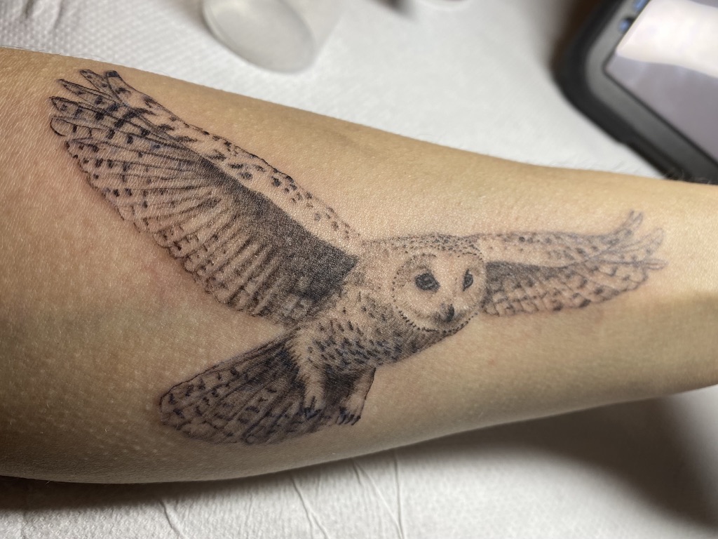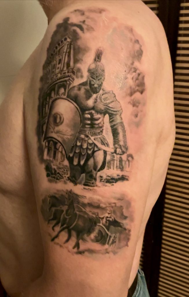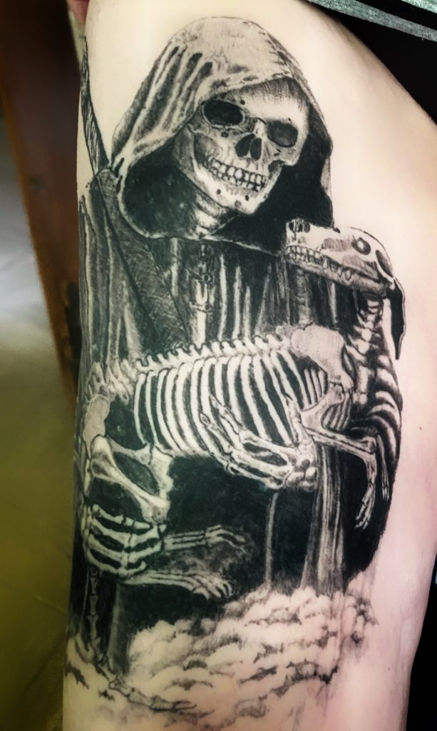 L’art est pour moi une histoire de famille. Fils d’un père illustrateur, j’ai grandi au milieu des crayons et des planches à dessin, développant très tôt un regard aiguisé sur l’image. Mon parcours s’est ensuite structuré par une formation solide : d’abord à l’ESAAT de Roubaix, où j’ai obtenu un BT de dessinateur maquettiste, puis aux Beaux-Arts de Valenciennes.Ce bagage académique et cet héritage familial sont les fondations de mon travail actuel. Ils m’ont donné la rigueur nécessaire pour maîtriser le réalisme noir et blanc, où la gestion de la lumière et des volumes est primordiale. Parallèlement, ma fascination pour les techniques d’impression classiques m’a naturellement dirigé vers le style gravure, une esthétique où la ligne hachurée devient le moteur de l’émotion.En 2025, j’ai ouvert le studio L’Art Dans La Peau pour mettre ce savoir-faire au service de vos projets. Ici, chaque tatouage est envisagé comme une œuvre d’art à part entière, héritière des techniques de l’illustration et de l’exigence des Beaux-Arts.